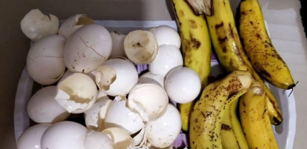 Banana peel, coffee and eggshells