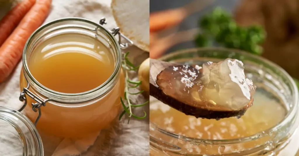 - Pour the broth into containers and place it in the refrigerator. As it cools, it will solidify and take on a jelly-like consistency.