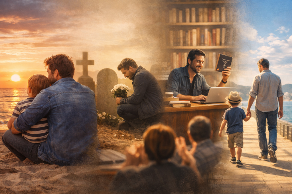 Angela returned, this time home, with cookies and books for the children. He sat on the floor to play with them as if the pain were not a wall, but a place where you could also breathe.